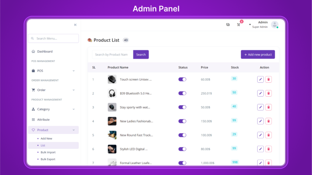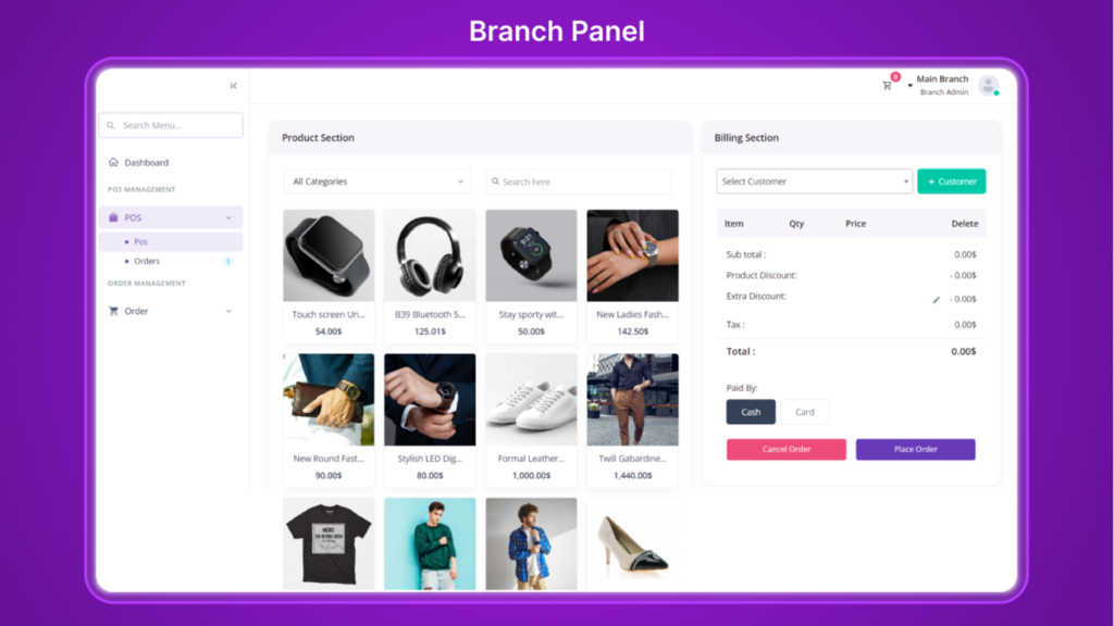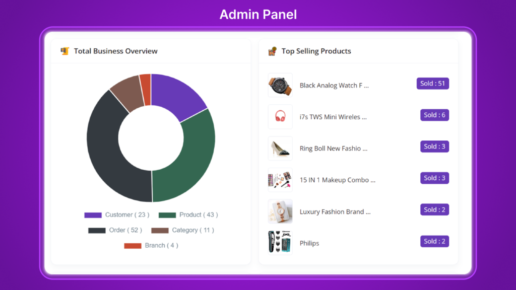 Gérez l'ensemble de votre boutique E-commerce (avec opérations de vente multi-succursales) dans un panneau d'administration centralisé.
