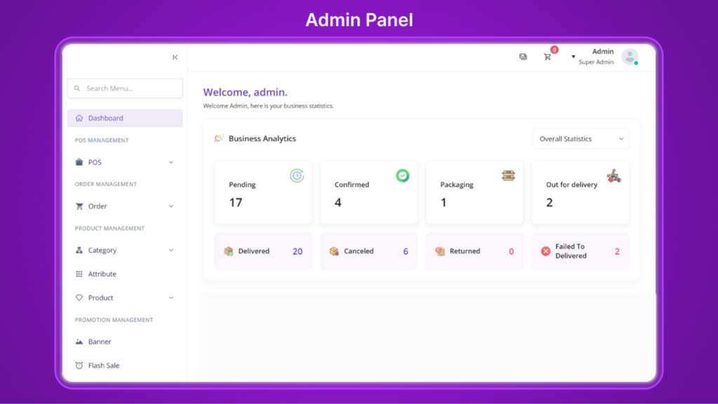 Vous pouvez gérer tout votre Business sur l'Admin panel centraliser, simple et complet avec toutes les fonctionnalités