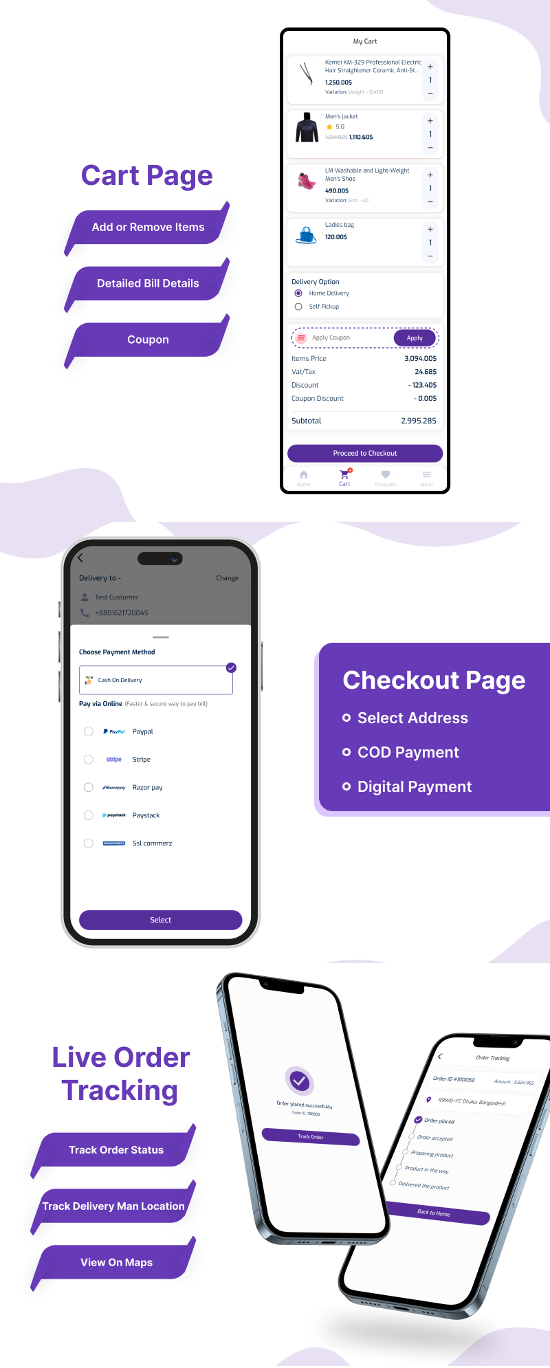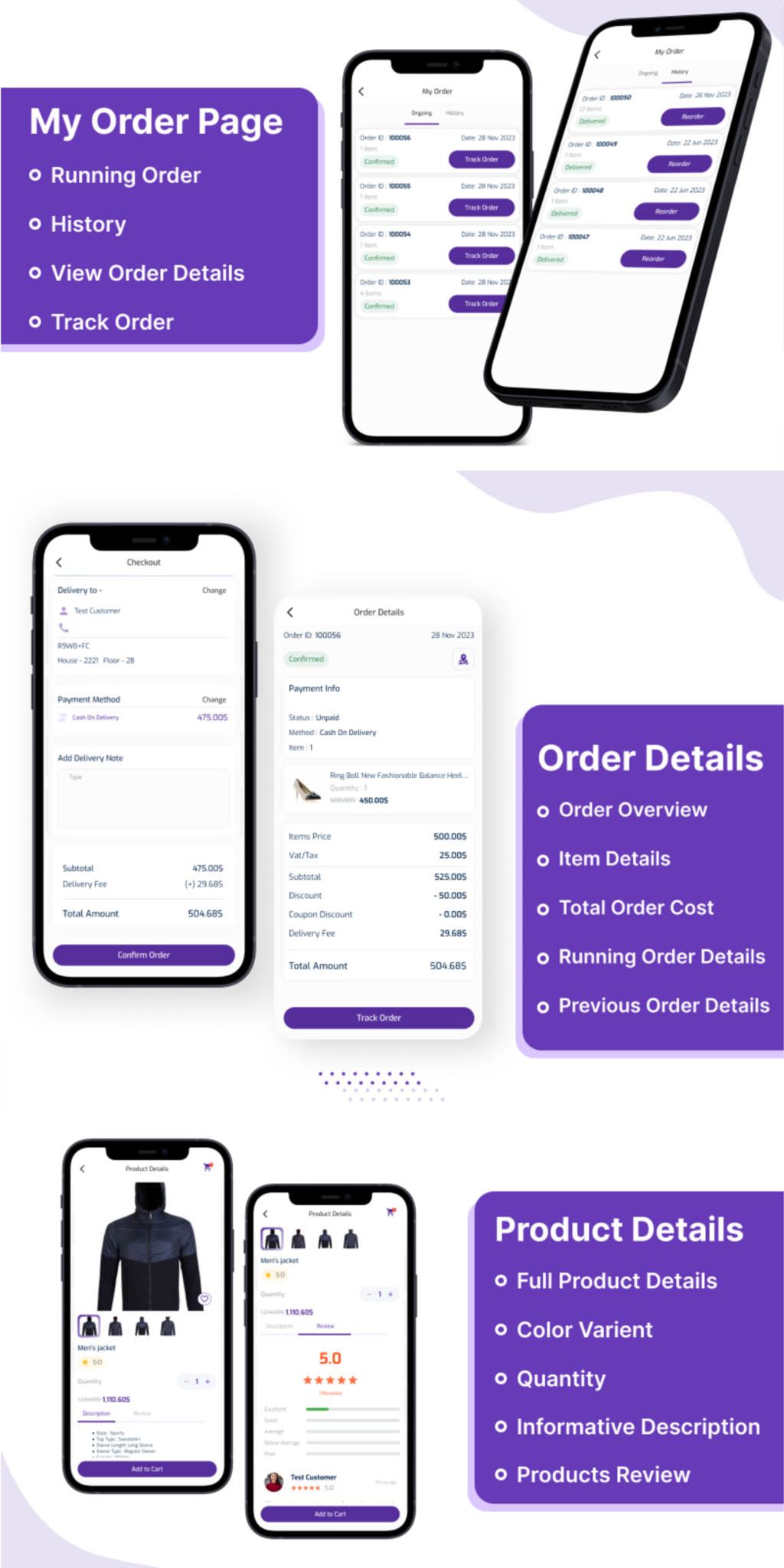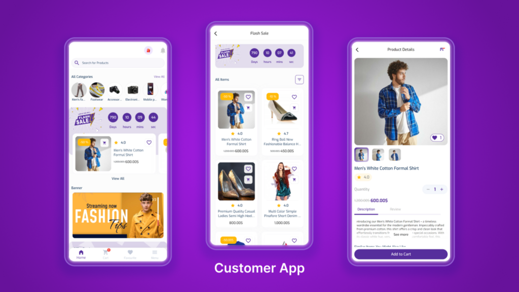 L'application mobile hybride pour les plateformes Android Play store et Apple Appstore responsive pour tout type d'appareil avec un UI/UX simple et moderne pour facilité l'utilisation et l'expérience client